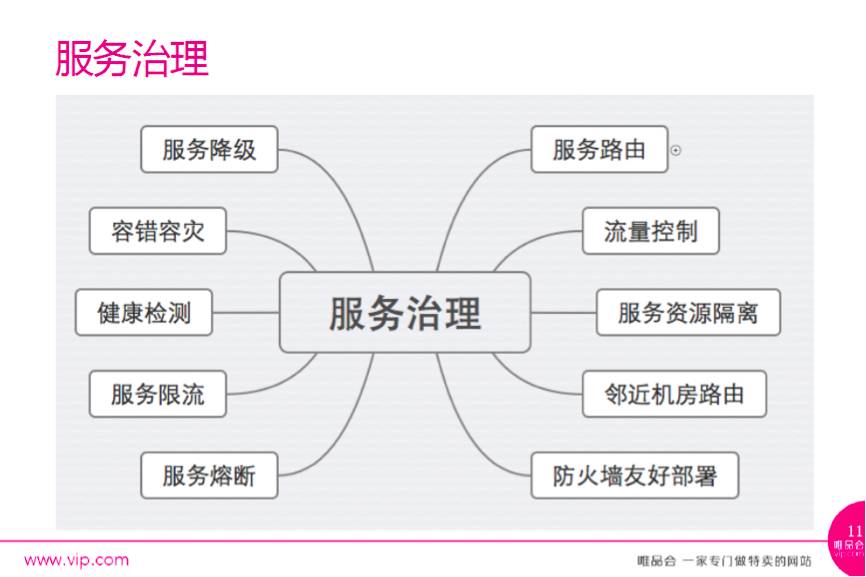 如上图所示,服务治理还做了很多事情,主要跟业务相关的,通用层面包括服务路由、流量控制等。
