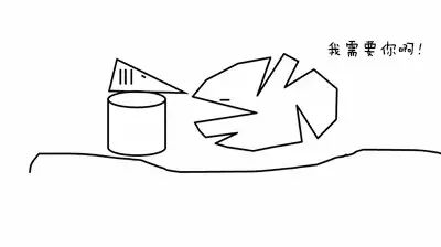 Miss△:我自己?大家不都是一起走的吗?我一个人是不可能感到快乐的!只有寂寞、孤单、没有自信、空虚、无助......而且那种与情人甜甜蜜蜜的感觉真的好棒!而且我尖尖的形状滚不起来。