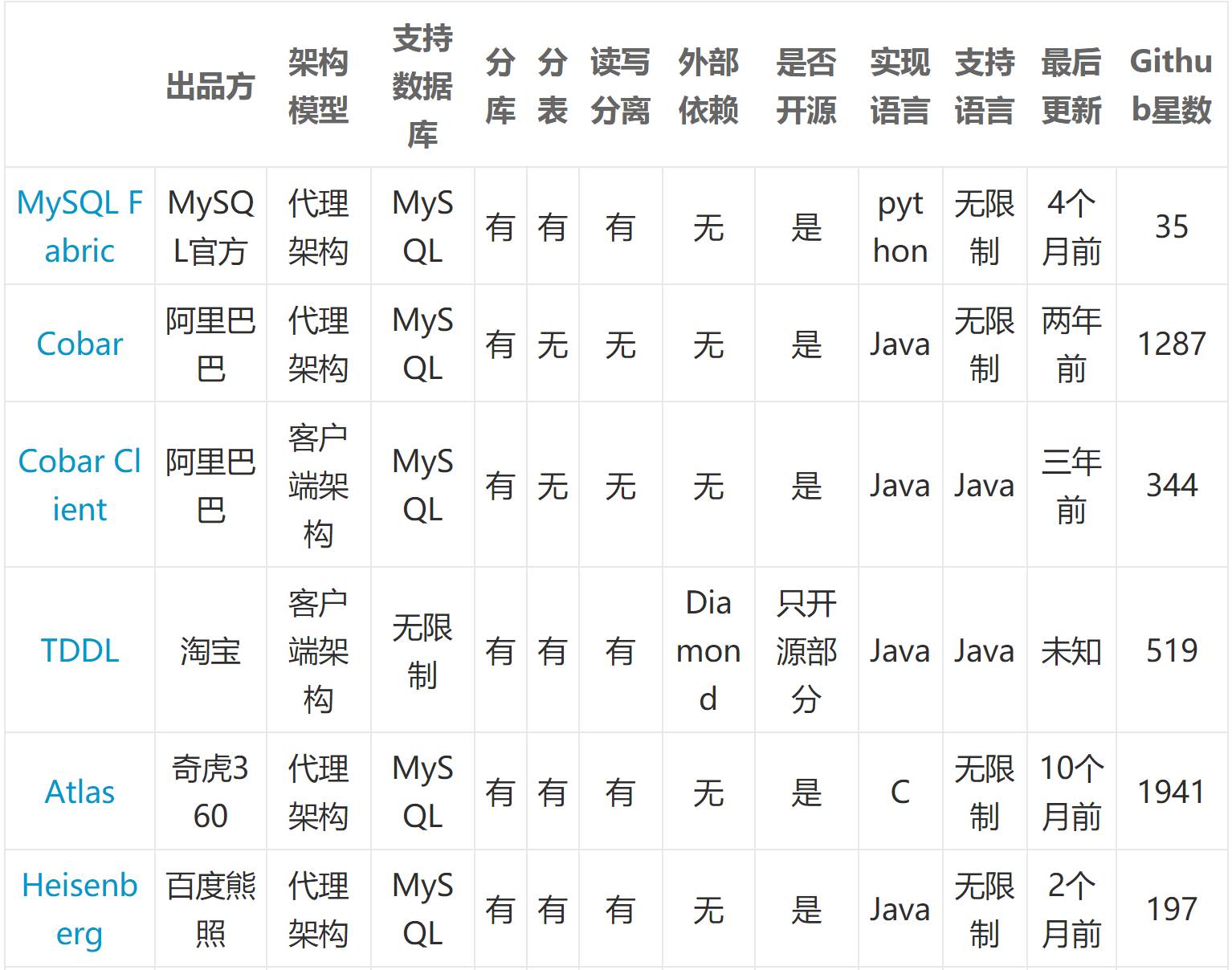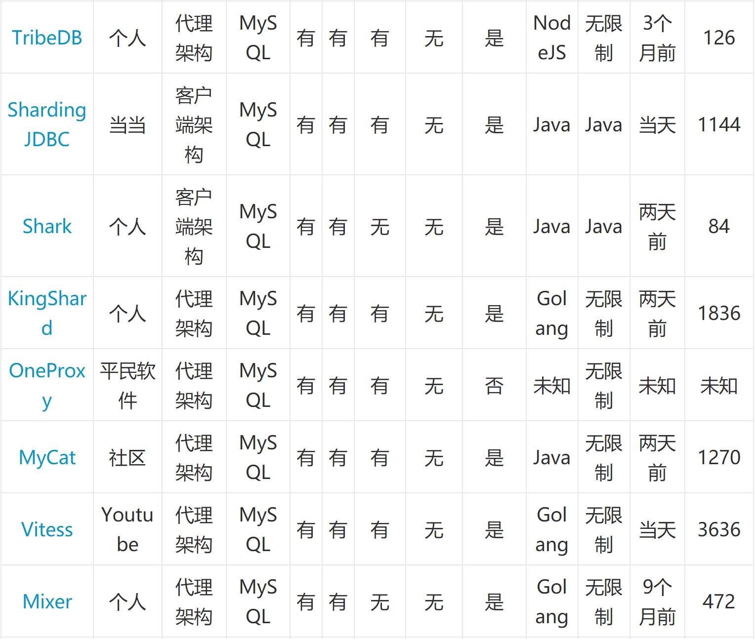 具体功能是否满足,比如需要跨节点ORDER BY,那么支持该功能的优先考虑