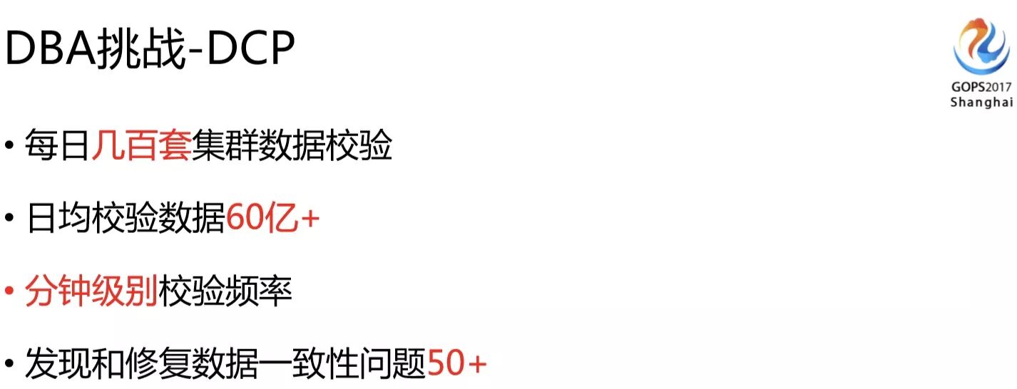 所以我们DBA研发了一个DCP的平台,DCP就是为数据一致性兜底的,它会全量的对比我们各个机房的数据,告诉DBA到底什么时候有数据不一致的问题,大概是多少,是什么样的类型,怎么修复,不一致量大的时候还需要有合适的修复工具。