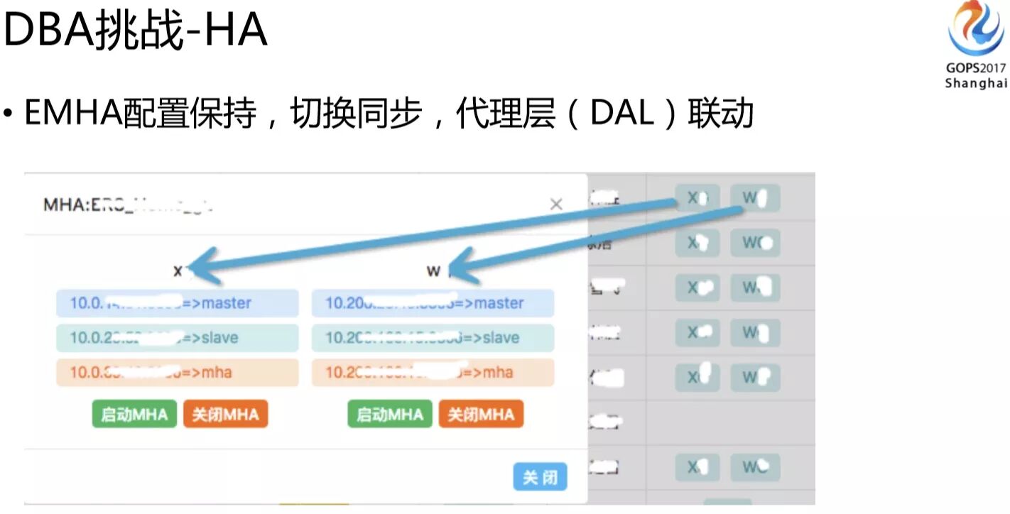 刚刚讲的是数据校验DCP的平台,还有一个HA的保障,集群数量翻番了,这时候你需要保证任何一个节点挂了都能尽快的切过去,同时如果你的节点有调整有下线等,你都需要保证HA配置能够跟着变动,否则HA的成功率就会得不到保证,800多套集群也不可能再依赖人肉去保证了。