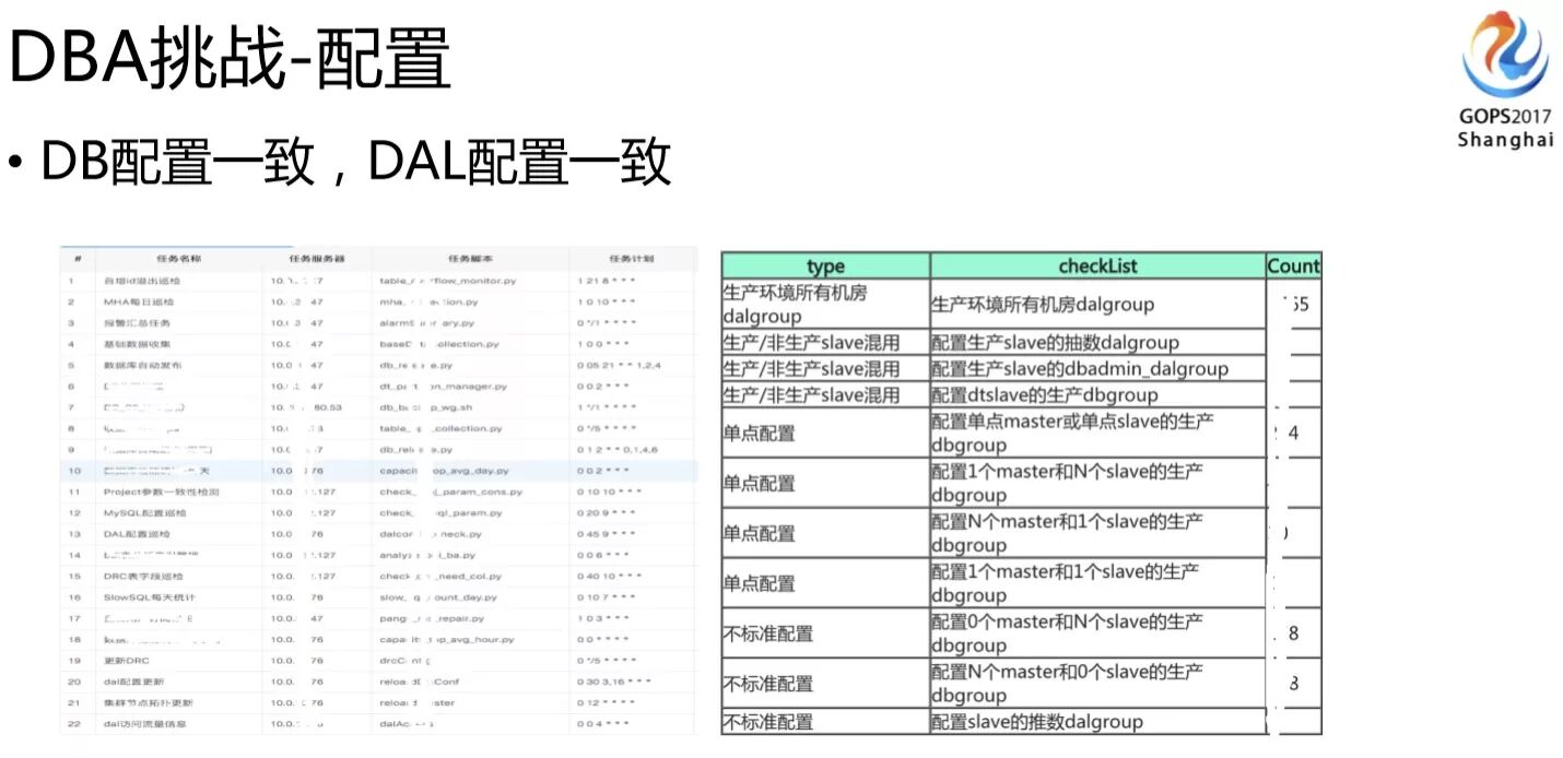 刚刚讲了那么多的改造前后的变化。对DBA来讲,除了业务在多活的时候做改造,架构在多活时候的支持外,我觉得做多活改动最大的就是DBA了,对DBA的挑战真的很大。就像前面说的在集群数量很大的情况下,怎么有效保障数据一致性、HA、配置、容量,还有DDL等问题。