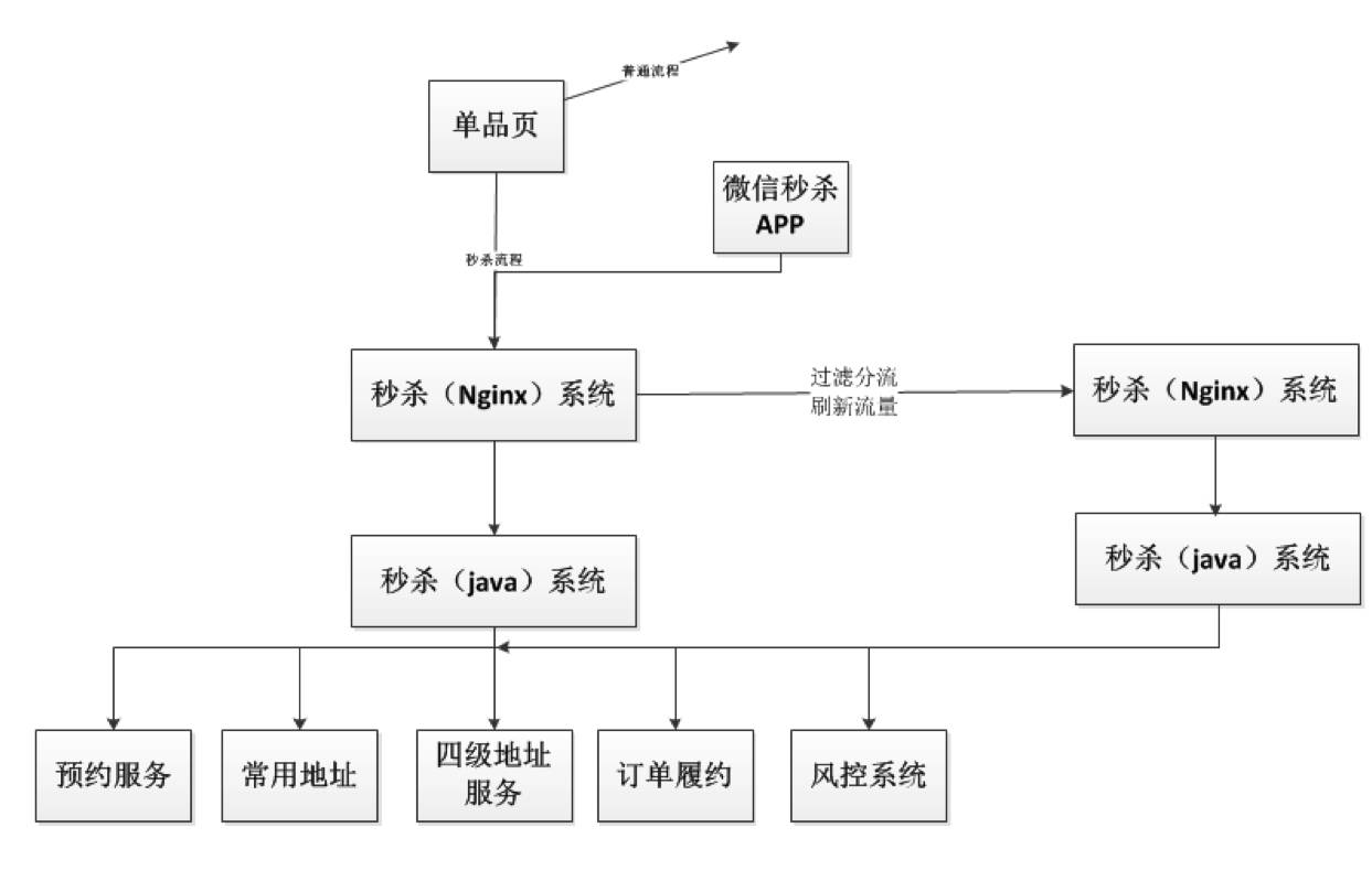 秒杀系统从 Ngnix 进来就有各种的限制,到我们会识别用户供应商或者商贩去刷的数据,这块调用是从正常访问的单品页分出来,不影响主流程。
