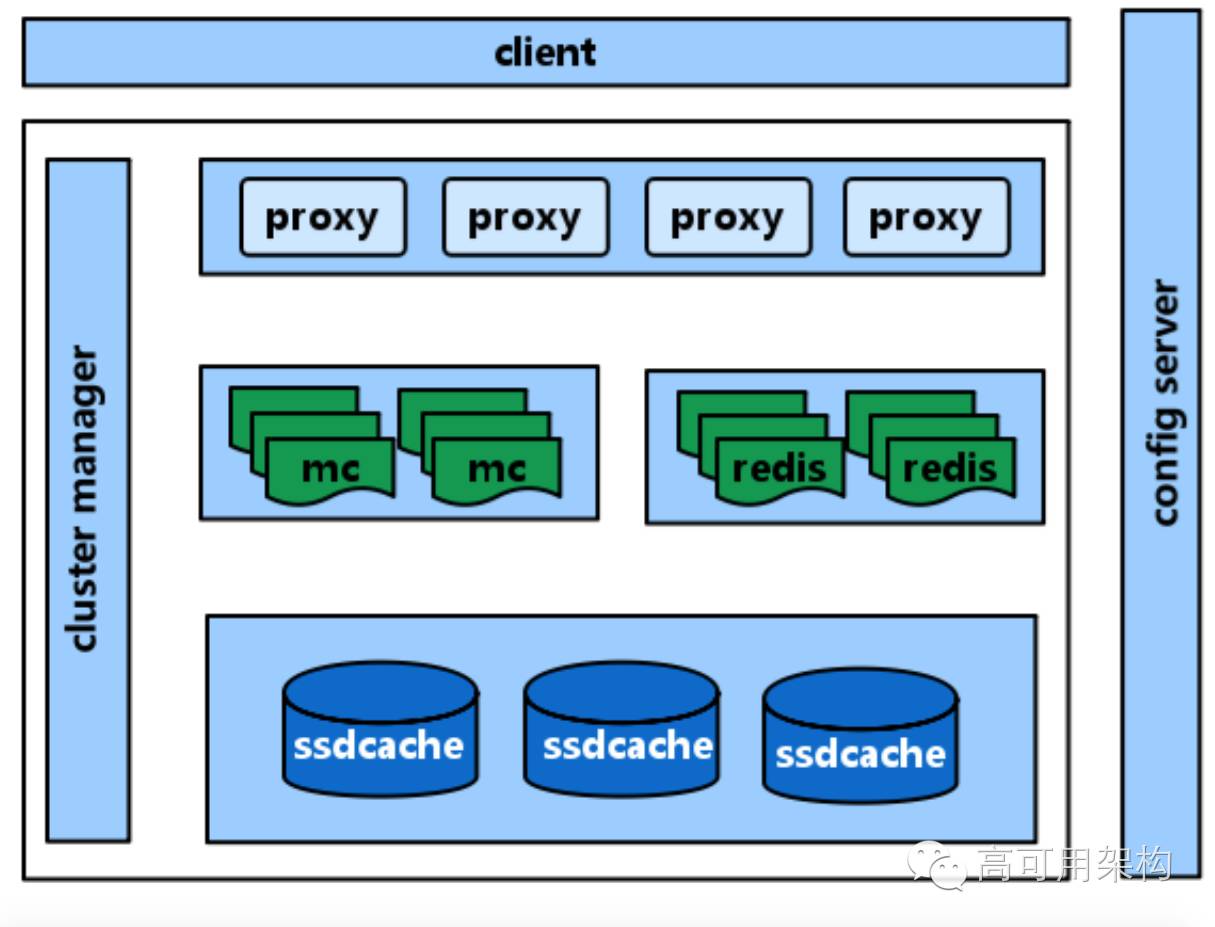 CacheService 最早是为了解决内部使用 memcached 遇到的问题而开发的服务化框架,主要包含以下几个模块: