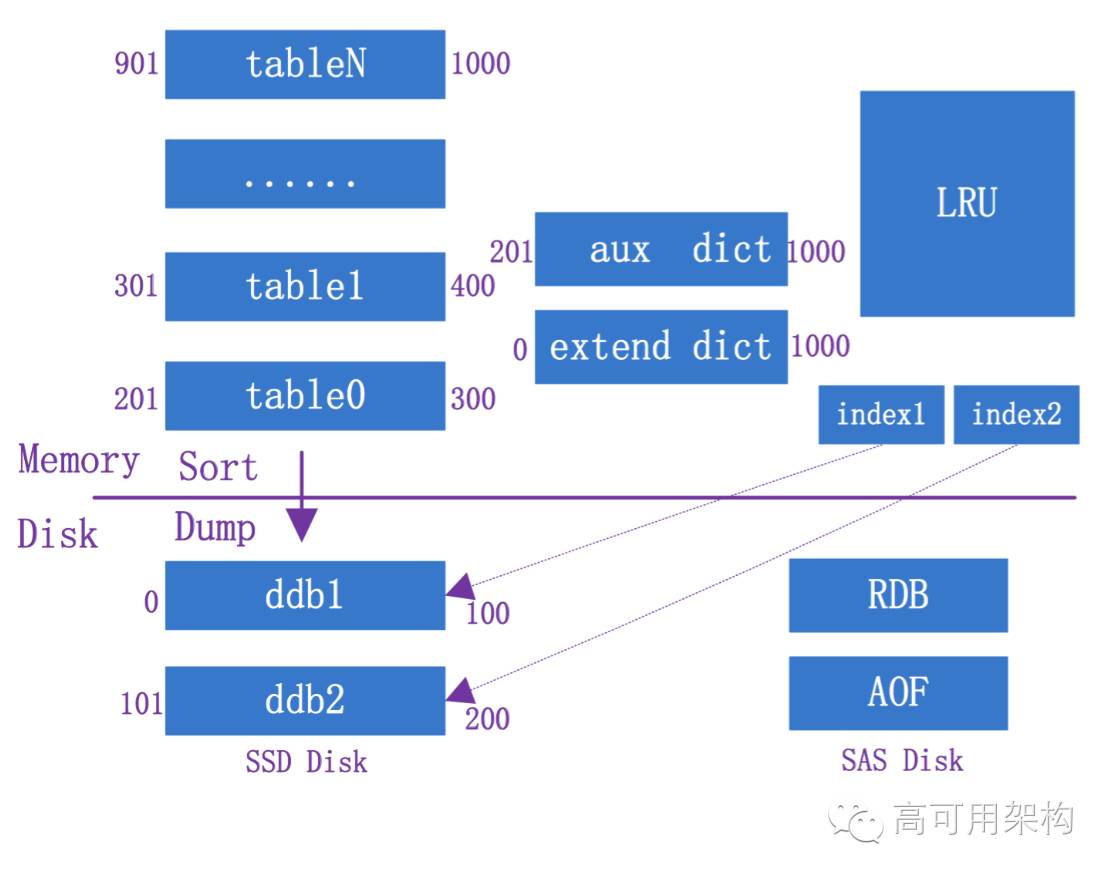 冷热数据分离:频繁访问的热数据存储在 memory,访问较少的冷数据存储在磁盘,降低服务成本