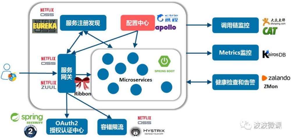 在系统架构中,和安全、日志、监控等非功能需求一样,配置管理也是一种非功能需求。配置中心是整个微服务基础架构体系中的一个组件,如下图,它的功能看上去并不起眼,无非就是简单配置的管理和存取,但它是整个微服务架构中不可或缺的一环。另外,配置中心如果真得用好了,它还能推动技术组织持续交付和DevOps文化转型。