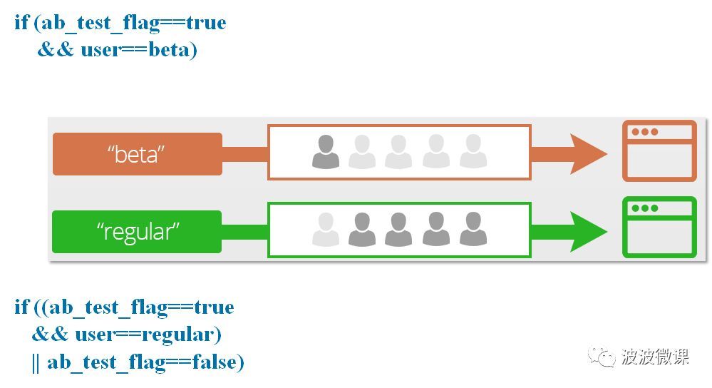 如果A/B测试开关是打开的(),并且是beta用户(),那么就走改版后的新结账逻辑。