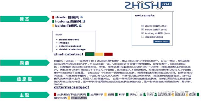 还有zhishi.me,它主要利用识别sameAs关系,将分散在中文三大百科网站(中文维基百科、互动百科和百度百科)中的知识进行融合。