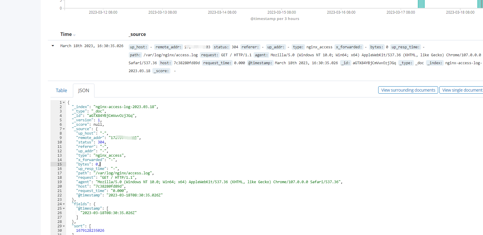 提前启动nginx,浏览器刷新几次nginx,查看kibana的日志情况: