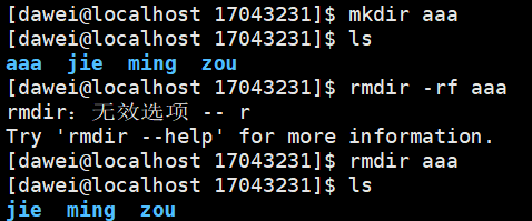 - rmdir 指令,rmdir 指令是删除空目录,基本语法为rmdir 要删除的空目录,不过rmdir 删除的是空目录,如果目录下有内容时无法删除的。