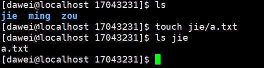 (4)在当前目录的第一个子目录创建一个文件并命名为a.txt