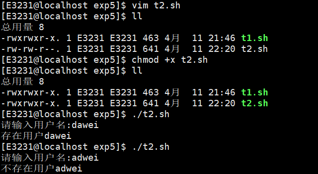2.编写一脚本,判断输入用户名是否存在,输出结果只能是存在该用户或者不存在该用户,不能有其他数据输出。