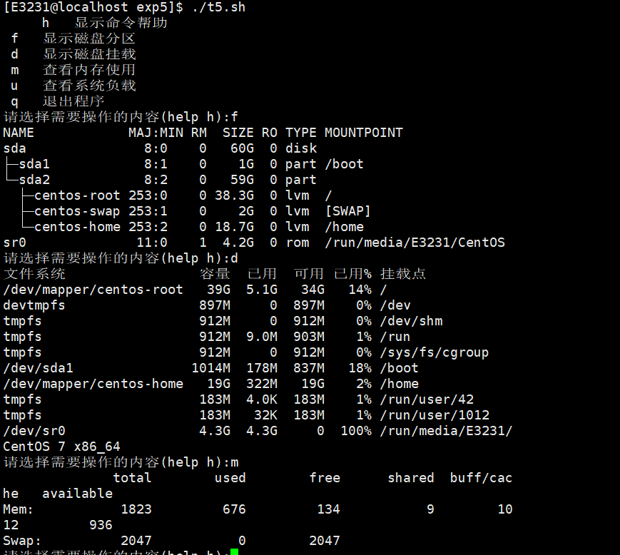 5.模拟一个多任务维护界面,当执行程序时先显示总菜单,然后进行选择后做相应的维护监控操作。
