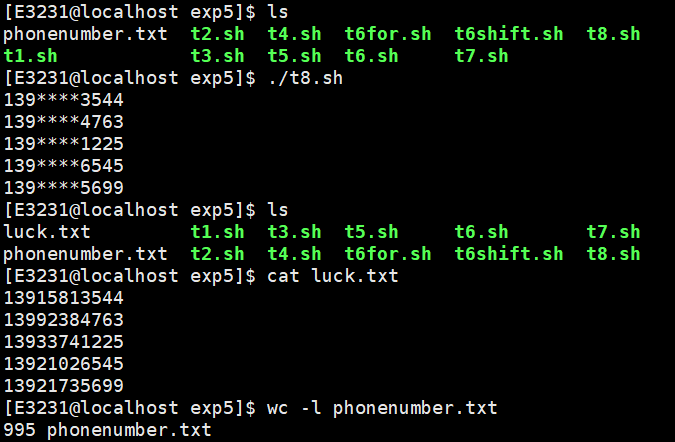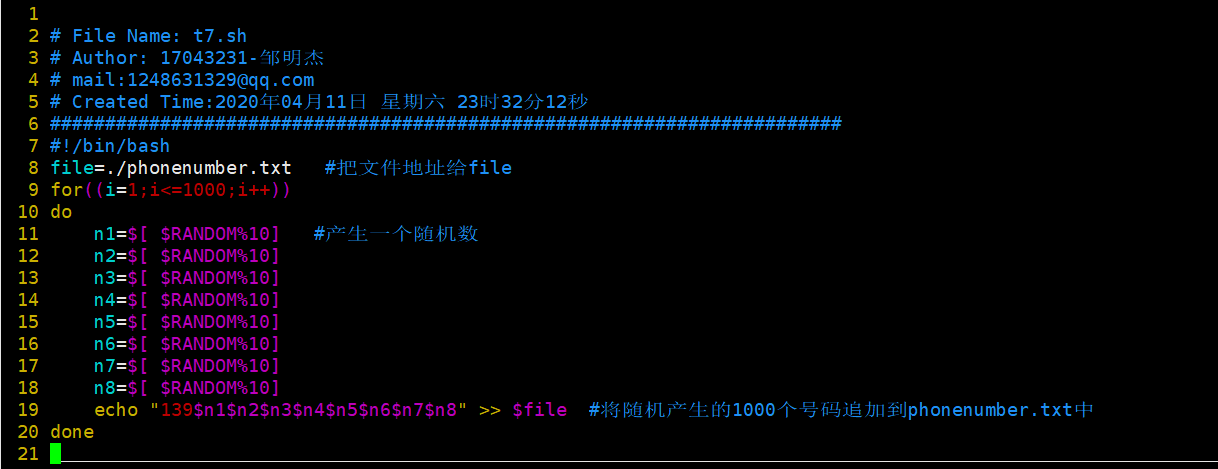 7.编写脚本,生成一个phonenumber.txt文件,文件内容为随机产生以139开头的手机号1000个,每个手机号占一行。
