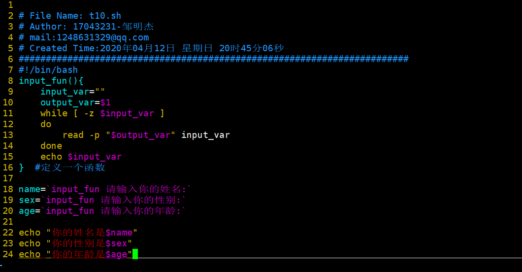 10.编写脚本收集用户输入的基本信息(姓名,性别,年龄),如果用户不输入一直提示用户输入,最后根据用户输入的信息输出相应的内容。