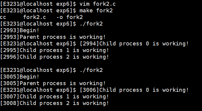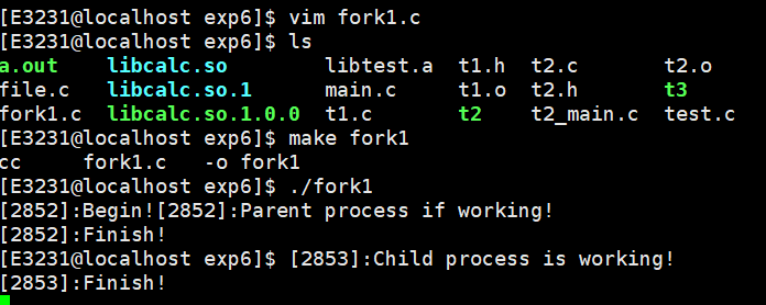 fork创建一个子进程,进程创建成功后父子进程分别输出不同的内容。![]()