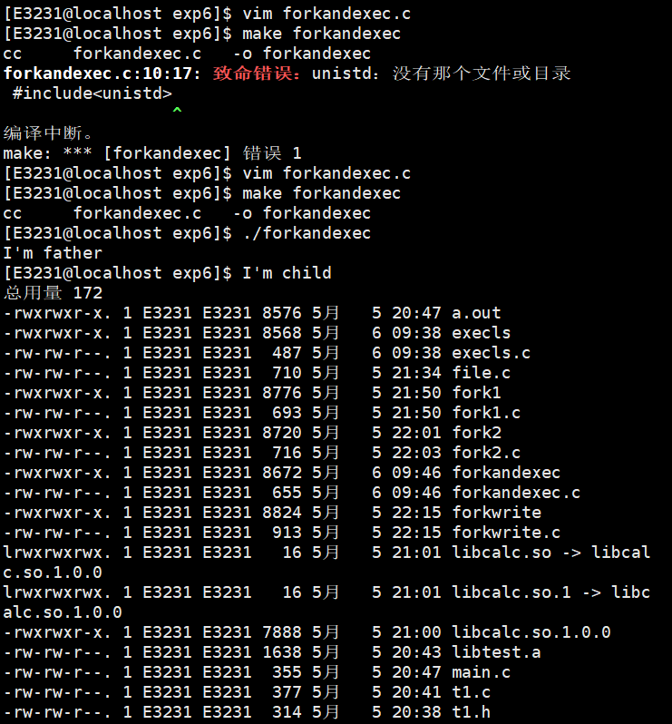 execvp启动ls命令以及使用fork函数产生子进程调用execvp启动ls。
