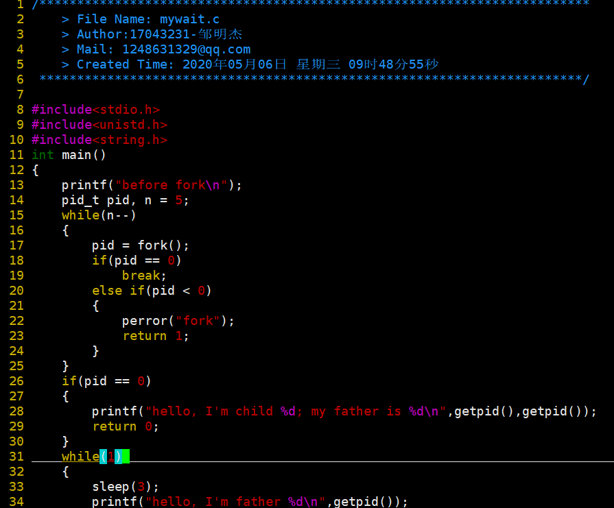 waitpid函数等待特定子进程结束,若该子进程不结束,父进程一直阻塞。