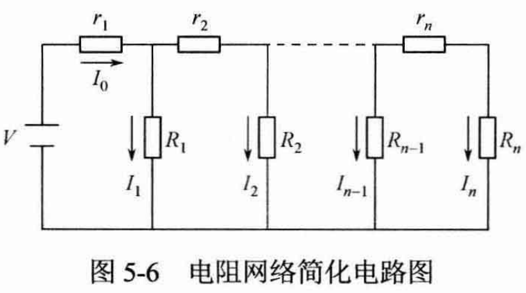 —种大型输电网络可以简化为图 5-6 所示的电路,其中R1,R2,...Rn表示负载电阻,r1,r2,...rn表示线路内阻,设电源电压为V。