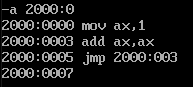 将下面3条指令写入从2000:0开始的内存单元中,利用这3条指令计算2的8次方