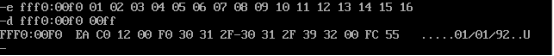 用d命令查看内存FFF00H~FFFFFH内容,如图所示: