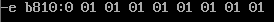 分析:8086中A0000~BFFFF为显存地址空间,在B8100H开始的单元中填写数据会被读取并解析为对应的屏幕信息并显示。