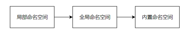 2.查找顺序:局部命名空间(嵌套函数先到自己的命名空间搜索,再到父函数的命名空间搜索) ==> 全局命名空间 ==> 内置命名空间,如果均没有查找到,将引发一个 NameError 异常。