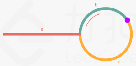 b+c是一个整圈,因此,如果慢指针从相遇点继续往前走,与此同时另一个慢指针从起点开始走,则两个点肯定会在链表环入口相遇。