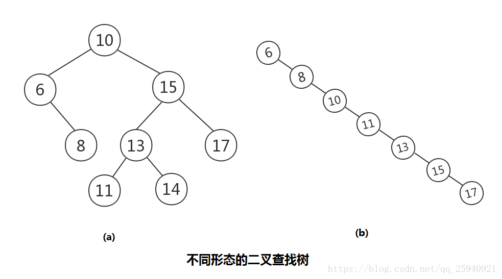 二叉查找树,也称二叉搜索树,或二叉排序树。其定义为,要么是一颗空树,要么就是具有如下性质的二叉树: