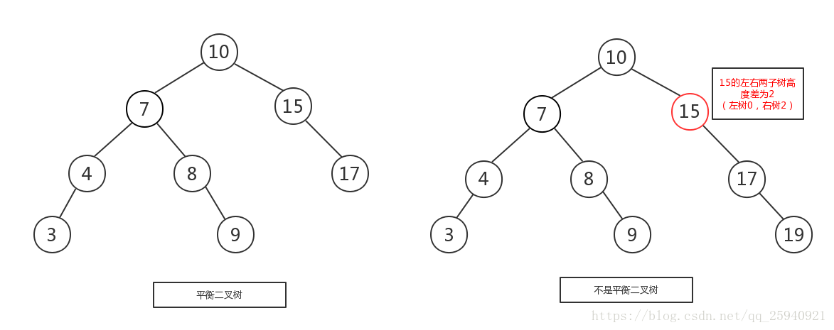 (5)所有叶子节点都位于同一层,即根节点到每个叶子节点的长度都相同。