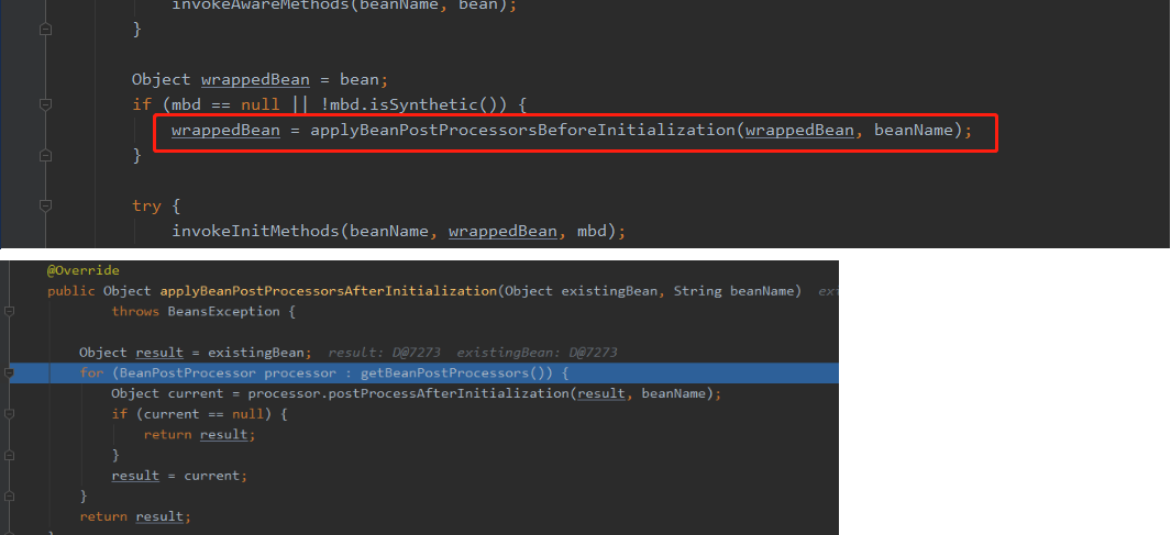 不同的beanPostProcessors实现的对应不同的 postProcessAfterInitialization,返回的bean对象要决定于其具体的实现。