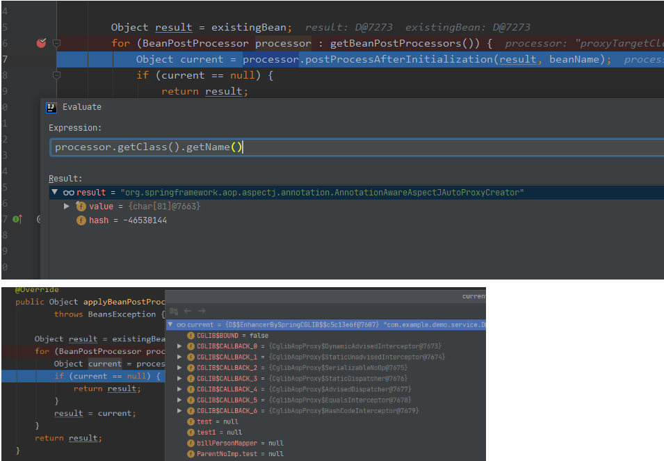这里可以看到,当有AspectJ时,会有对应的postProcessor对当前的bean对象代理。