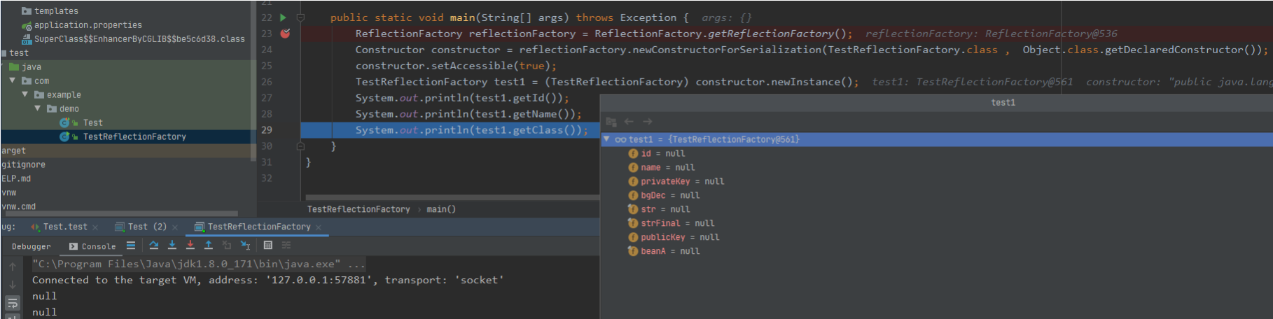 这里可以看到,这里通过反射拿到了 sun.reflect.ReflectionFactory 类,执行了getReflectionFactory方法,获取到对应的ReflectionFactory,并且执行