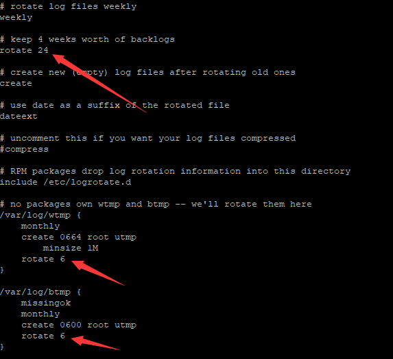 1.修改/etc/logrotate.conf文件