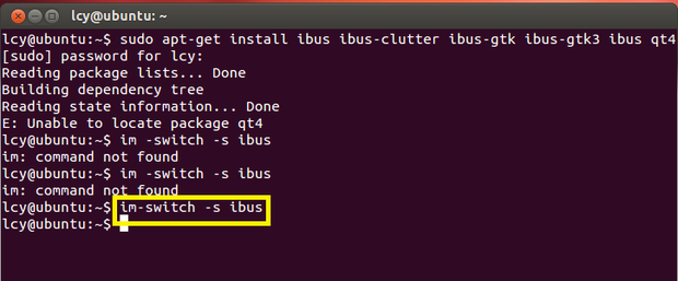 输完命令就启动了IBus框架,继续在终端中输入命令:im-switch -s ibus