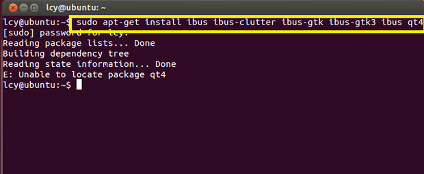 在“Apply Changes”终端中输入命令sudo apt-get install ibus ibus-clutter ibus-gtk ibus-gtk3 ibus-qt4