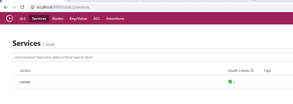 启动成功之后,访问 http://localhost:8500 , 可以查看 Consul 管理界面。