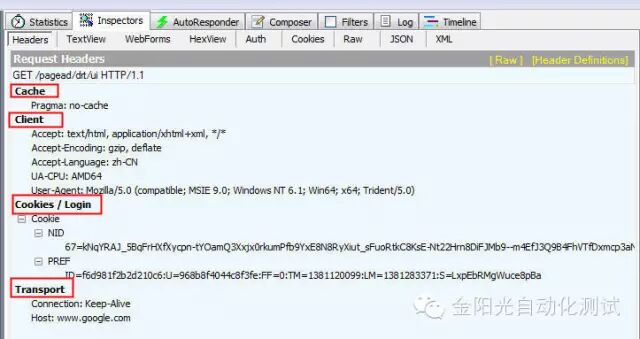 使用Fiddler 能很方便的查看Reques header, 点击Inspectors tab ->Request tab-> headers 如下图所示