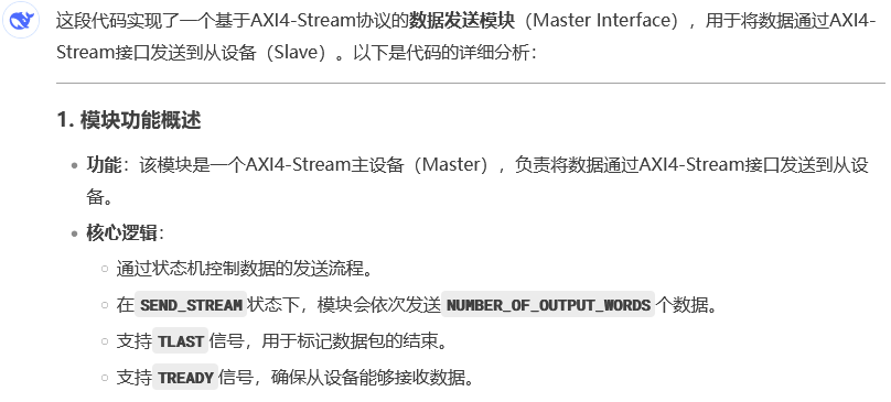 复制所有代码,先交给deepseek全部分析一下主体逻辑,这里直接贴出结果,建议大家带着代码去看,代码从vivado做到这一步都能点开文件看到,这边不再贴出。
