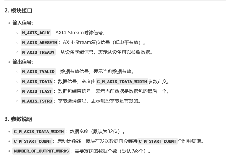 第二个是等待计数核,这里默认是32,意味着状态机在INIT_COUNTER阶段要等待32个时钟周期后才能进入SEND_STREAM,即开始传输阶段。