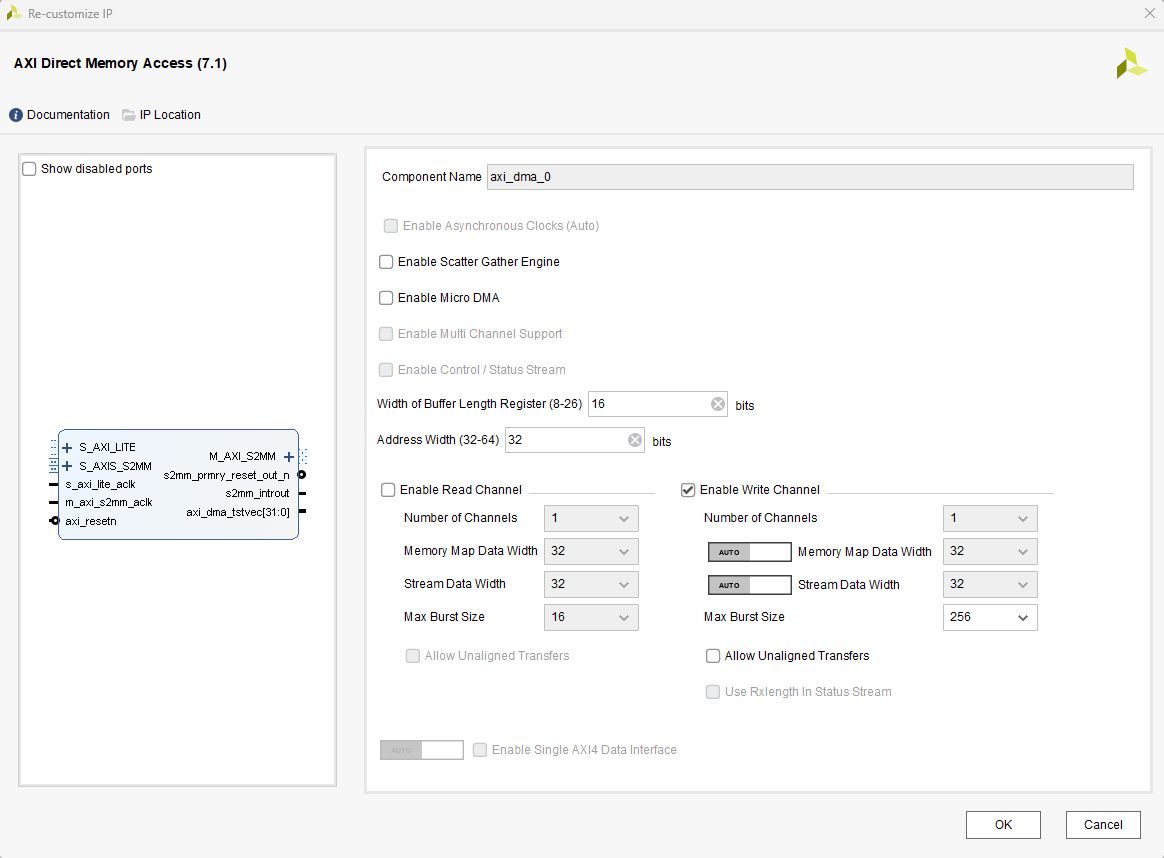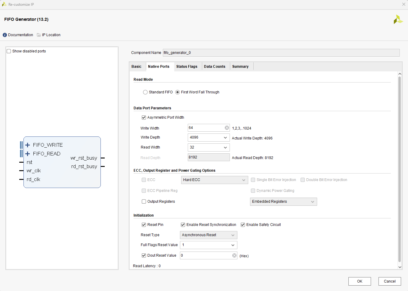 所有关联的模块的复位信号来自于dma的复位信号输出。写时钟250MHz,数据64位宽,读时钟100MHz,数据32位宽。