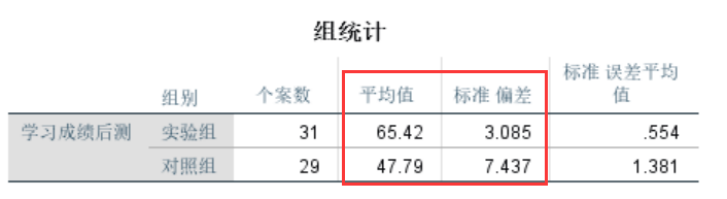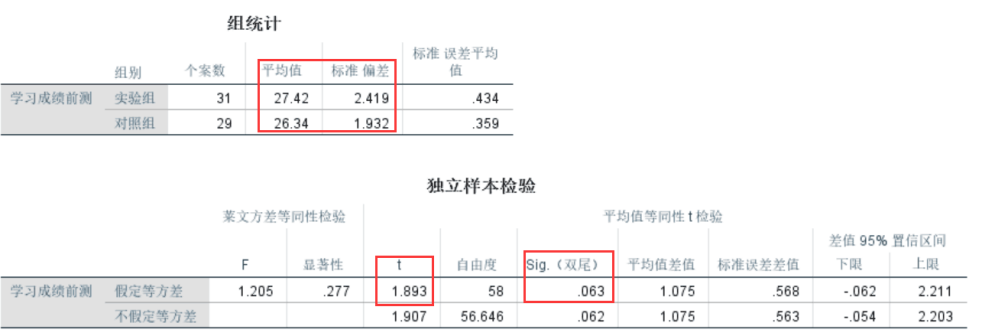 为了比较两组在学习活动前的先验知识,对前测分数进行独立t检验。实验组前测得分均值和标准差分别为27.4和2.4,对照组前测得分均值和标准差分别为26.3和1.9。t检验结果显示,两组前测成绩差异无统计学意义(t = 1.893, p > 0.05)。因此,我们得出结论,两组学生在参加学习活动之前对花卉有相当的了解。