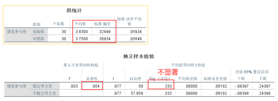 t检验结果显示两组间差异无统计学意义。由此推断,该方法维持了学生在跨文化学习中的课堂参与水平。