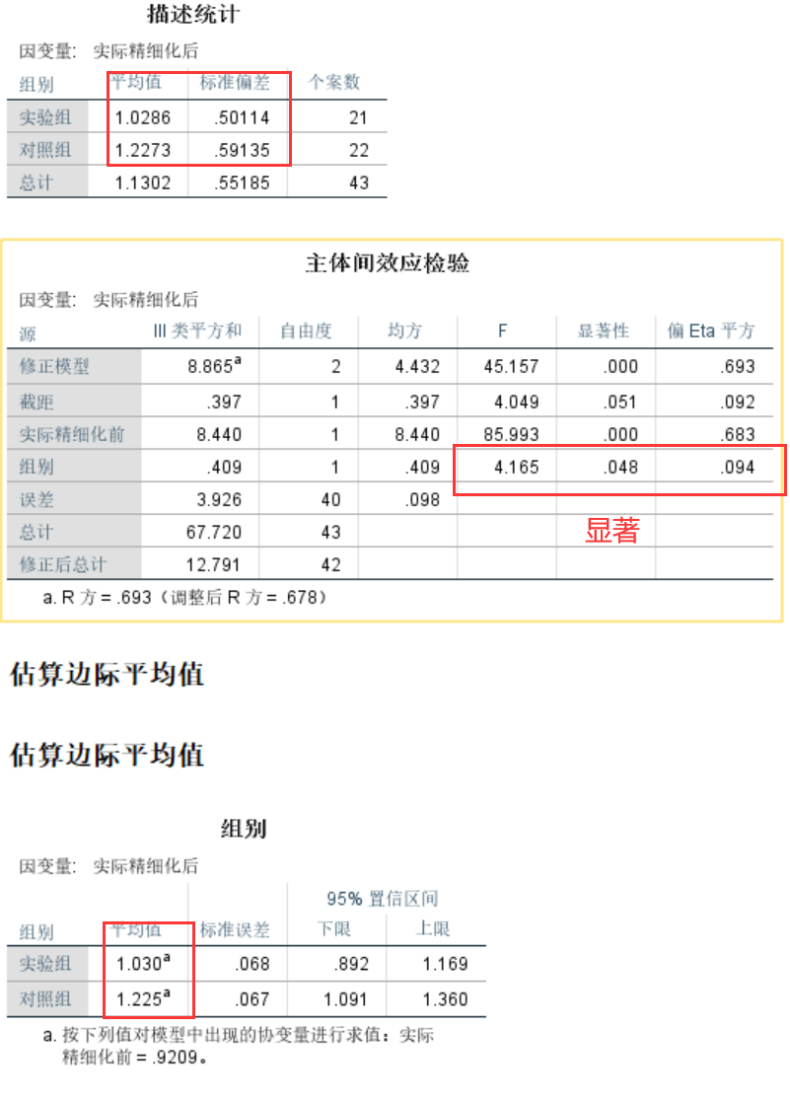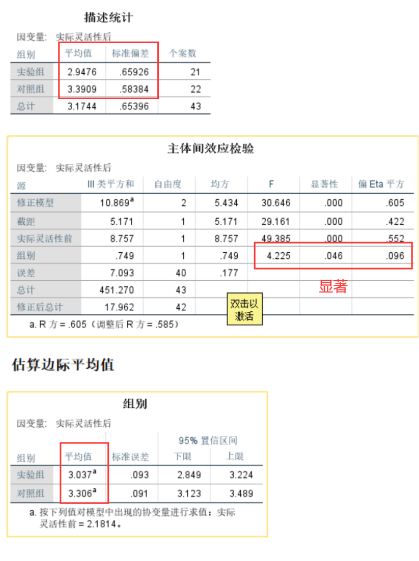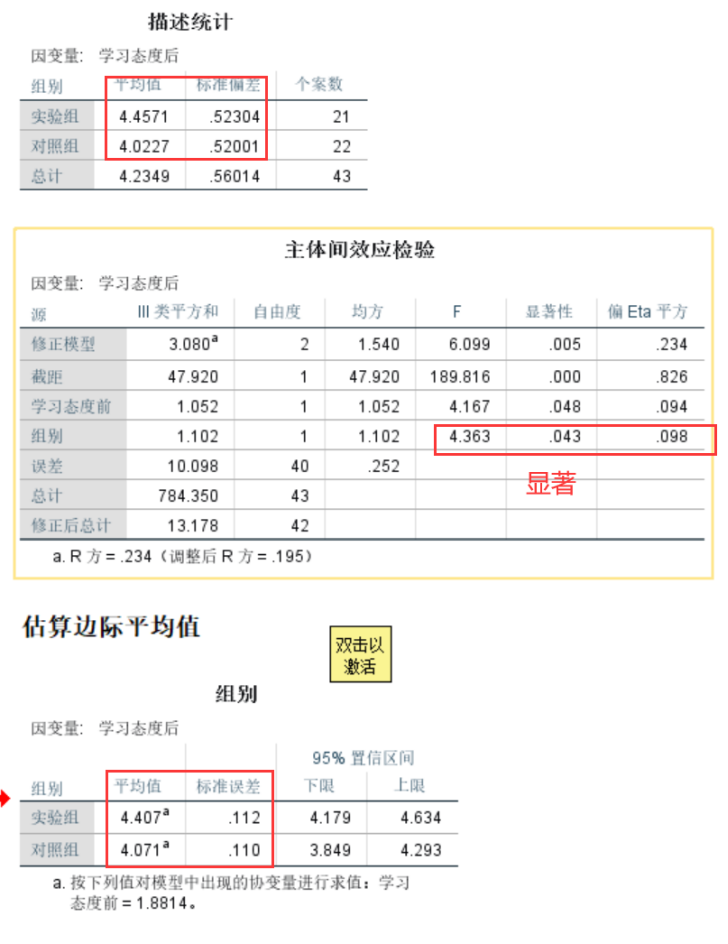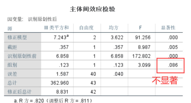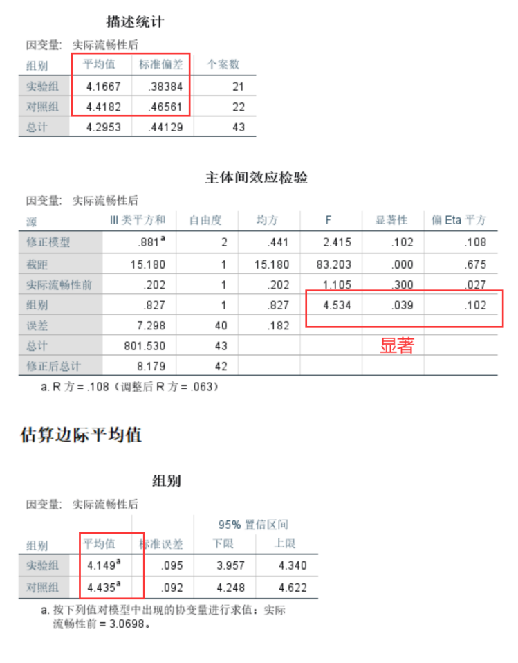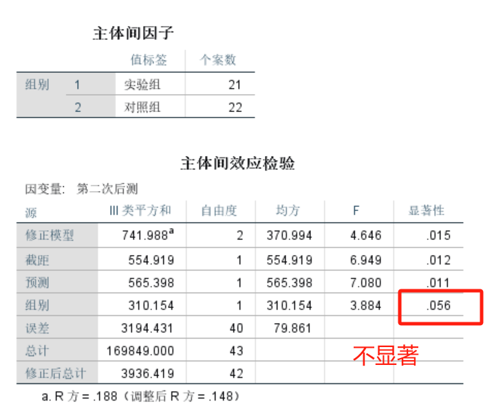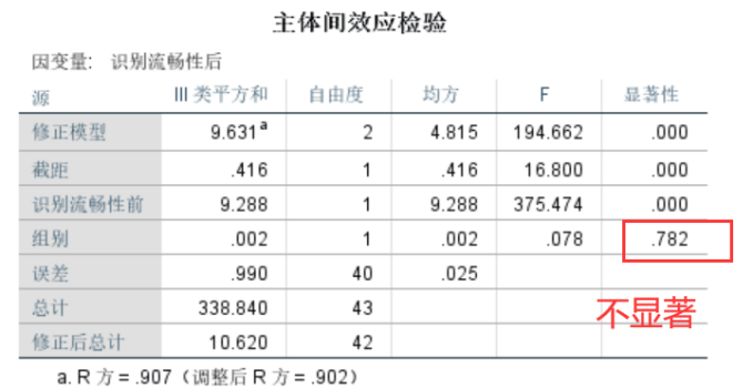 2、关于多人游戏的学习成绩,在确认回归同质性假设后进行ANCOVA。结果显示,实验组和对照组之间没有显著差异。