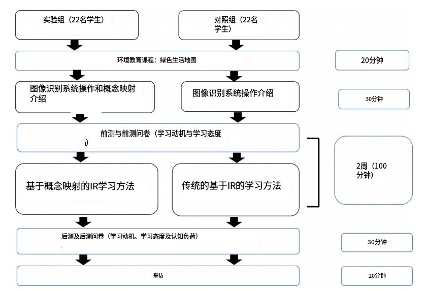 研究对象:本研究采用准实验设计来验证该方法的效果。参与者是台湾北部两个班的十年级学生。实验组22名学生采用基于概念映射的IR (CM-IR)学习方法,对照组22名学生采用传统的基于概念映射的IR学习方法,对学生的学习动机和学习成果进行评价。