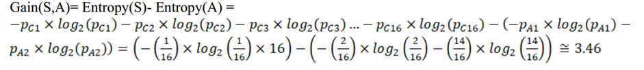 ② 计算基于每个特征的信息增益(表示在使用指定属性的特定条件下信息复杂性降低的程度),挑选最优特征,即信息增益最大的特征作为根节点。