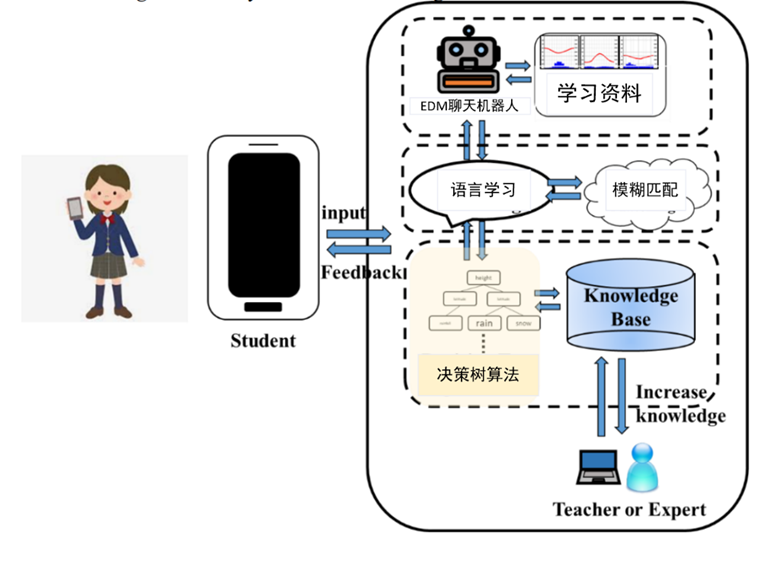 本研究利用IBM Watson构建了一个EDM聊天机器人,并将专家决策融入到多轮对话机制中,为学生提供自适应学习。在人工智能算法系统中,避免了与文化、宗教和性别相关的有偏见的词语,为学习者提供了一个公平的竞争环境,新的算法可以通过智能分析、诊断、预测、治疗和预防实现更接近人类的表现,为学生提供自适应学习(Yang, 2021)。实验结果表明,EDM聊天机器人在提高学生学习成绩、减少学习焦虑、增加学习乐趣方面比传统聊天机器人更有效。