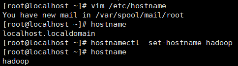 第二步:[root@localhost ~]# hostnamectl set-hostname hadoop