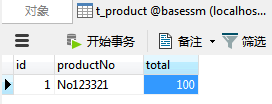 t_product表维护商品编号与商品库存剩余数量。编号No123321的这种商品的库存量有100个。