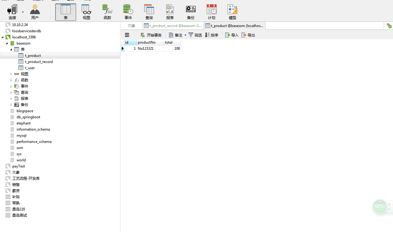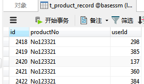 t_product_record维护抢到商品的用户ID。理论上t_product表开抢后的 记录数量应该是100条(共有100个人抢到了商品)。